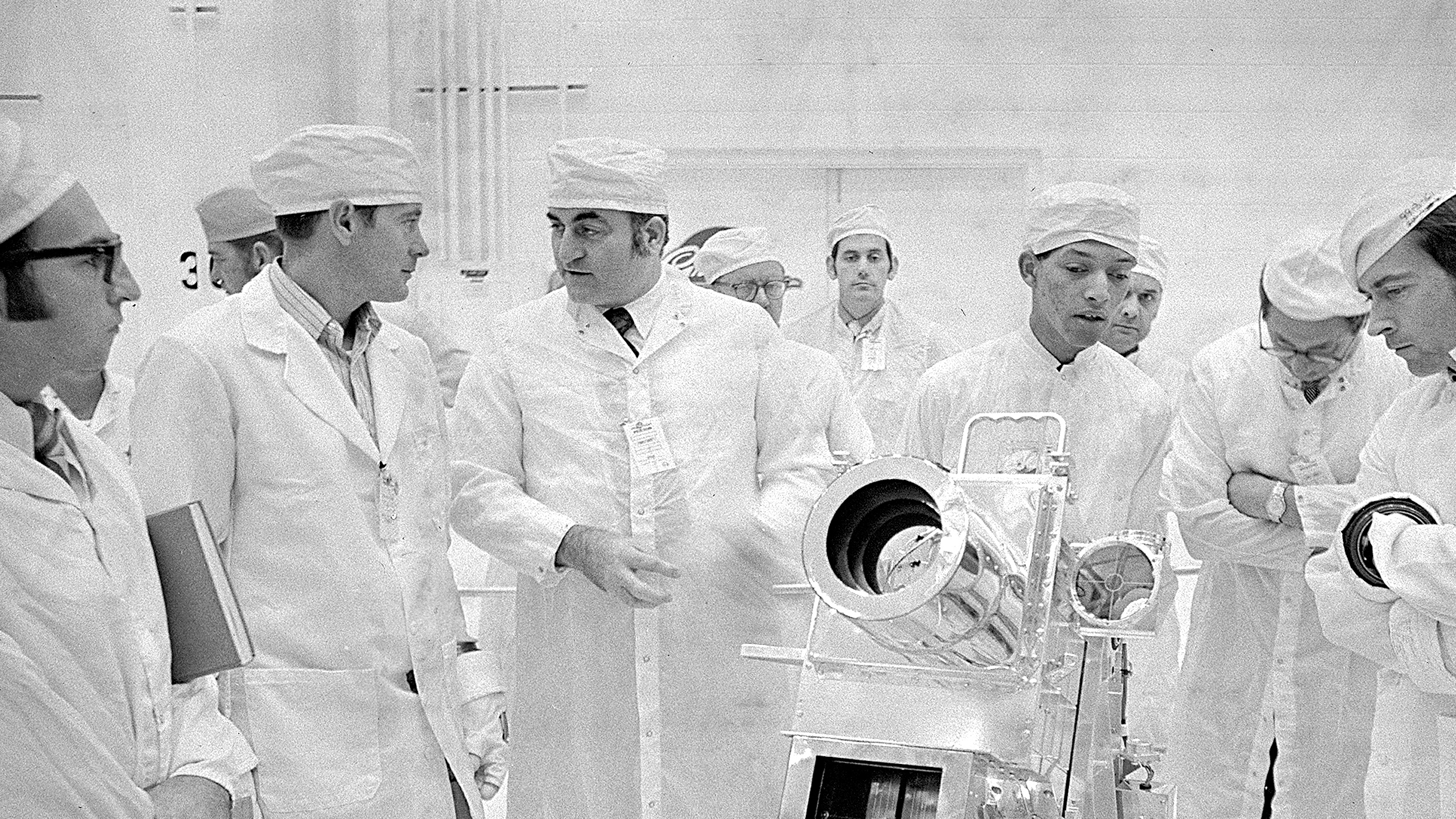 Top image: George Carruthers, center, principal investigator for the Lunar Surface Ultraviolet Camera, discusses the instrument with Apollo 16 commander John Young, right. On the left are lunar module pilot Charles Duke and Rocco Petrone, Apollo program director. Credit: NASA.