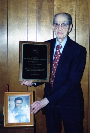 The story of Imes, Lawson, and Mickens shows how important mentorship has been to increasing the presence of African Americans in the field of physics. Donald Edward’s decision to include a framed portrait of Ronald McNair in the headshots he submitted for the centennial exhibit also serves as a visible reminder of the significance of mentorship. In 1972, Mickens and his colleague James Young decided to hold an event to honor senior Black physicists who had mentored the cohort of younger scholars, those who earned their doctorates in the late 1960s and 1970s. The event took place at Fisk University. Mickens served as the primary organizer. The three honorees were Halson V. Eagleson, Edwards, and John M. Hunter. In 1973, Eagleson, Edwards, and Hunter were credited with educating ninety percent of all Black physicists in the United States. In 1975, a second National Physics Award Ceremony was held at Morehouse University. In 1976, based on conversations that took place at the award ceremonies, the physicists who attended decided to launch an annual Day of Scientific Lectures, which would take place on different historically Black college campuses. Along with discussions about annual lectures came a larger conversation about forming a national organization for African Americans in physics. That conversation culminated in the inauguration of the Society of Black Physicists, later renamed the National Society of Black Physicists