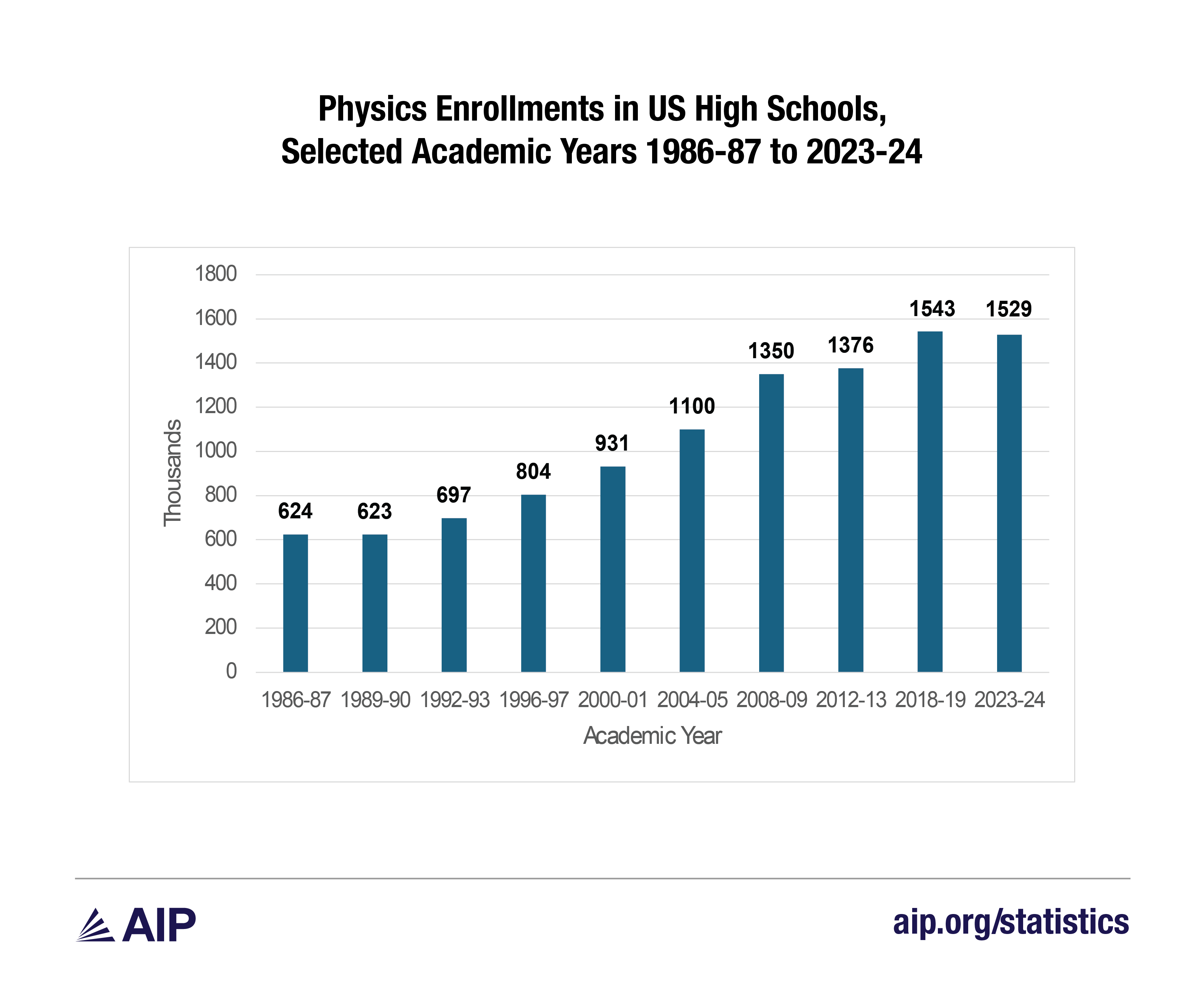 We have seen a steady increase in high school physics enrollments since the survey’s inception in 1983, with one prior exception. The 2023-24 survey marks the first time physics enrollments declined while the number of high school seniors increased.