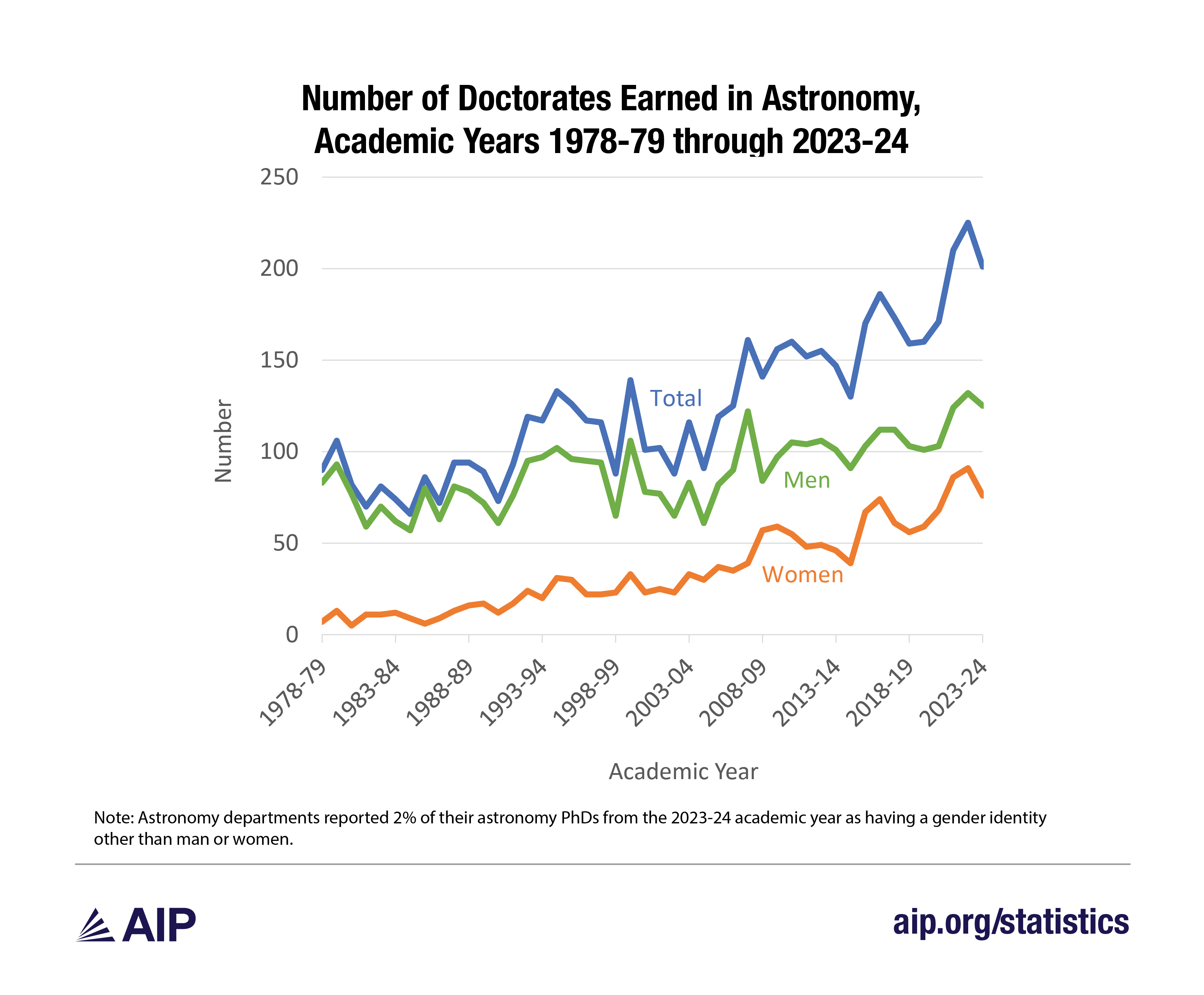 Number of Doctorates Earned in Astronomy, Academic Years 1978-79 through 2023-24